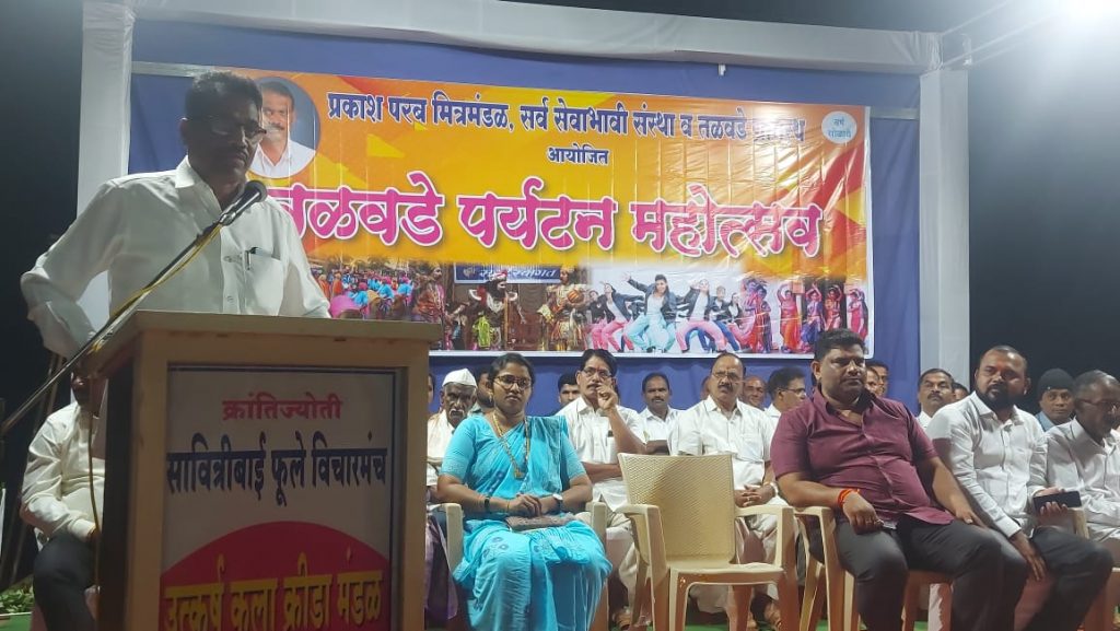 तळवडे : छोट्याशा तळवडे गावात १७ वर्षांपूर्वी प्रकाश परब यांनी पर्यटन महोत्सव आयोजित करण्याचे ठरविले. सावंतवाडी व मालवण नगरपालिकेनंतर एखाद्या ग्रामपंचायत क्षेत्रात पर्यटन महोत्सव आयोजित करणारा तळवडे हा एकमेव गाव आहे. हि परंपरा स्वर्गीय प्रकाश परब यांच्या निधनानंतरही सुरु ठेवली त्याबद्दल आनंद असून प्रकाश परब मित्रमंडळाचे कौतुक वाटते. प्रकाश परब ध्येयनिष्ठ व्यक्ती होते. दिवसरात्र लोकांच्या सेवेसाठी झडत होते. ते आज असते तर येथील राजकारणाची स्थिती वेगळी असती. तळवडे गाव सांस्कृतिक क्षेत्रात अग्रेसर आहेच त्याचबरोबर येथील उद्योजक नागरिकांनी रत्नागिरी आणि सिंधुदुर्ग जिल्ह्यात आपली छाप उमटविली आहे. तळवडे गावात उद्योजक घडण्याची परंपरा पुढील पिढीने सुरु ठेवावी.असे प्रतिपादन कुडाळ मालवणचे आमदार वैभव नाईक यांनी केले. https://sindhudurgsamachar.in/कोकण-तुळस-येथील-जलजीवन-मि/