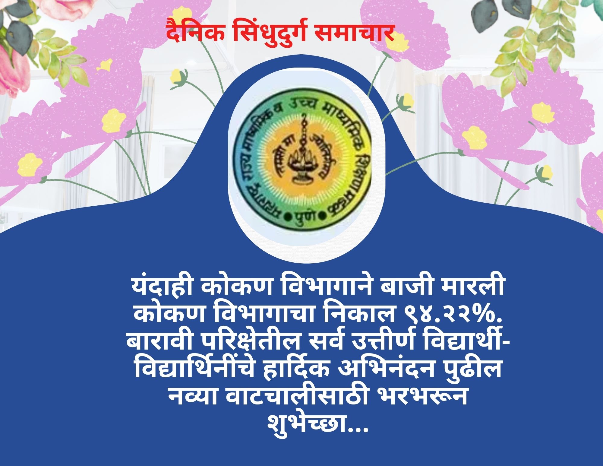 कोकणटॉप 5 कोकण विभागाने बाजी! बारावी परिक्षेतील सर्व उत्तीर्ण विद्यार्थी-विद्यार्थिनींचे हार्दिक अभिनंदन By EditorialTeam - June 9, 2022 0 38 FacebookTwitterWhatsAppTelegramCopy URL यंदाही कोकण विभागाने बाजी मारली कोकण विभागाचा निकाल ९४.२२%. बारावी परिक्षेतील सर्व उत्तीर्ण विद्यार्थी-विद्यार्थिनींचे हार्दिक अभिनंदन पुढील नव्या वाटचालीसाठी भरभरून शुभेच्छा.