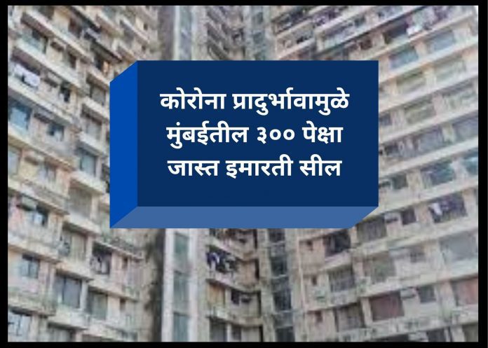 मुंबई- राज्यावरील कोरोनाचे संकट आता उग्र रुप धारण करत आहे. कोरोनाचा प्रादुर्भाव झपाट्याने वाढत असल्यामुळे राजकीय नेते, मंत्री यांच्यासह सेलिब्रेटीदेखील कोरोनाबाधित होत आहेत. कोरोनाचा प्रादुर्भाव झपाट्याने वाढत आहे. मुंबईतही कोरोनाबाधितांची संख्या चार पटीने वाढली आहे. दरम्यान, मुंबई शहरात ३०० पेक्षा जास्त इमारती सील करण्यात आल्या आहेत.