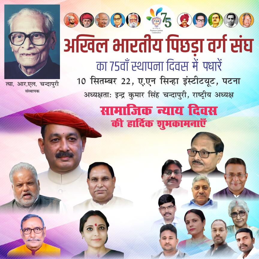 त्यागमूर्ती आर. एल. चंद्रपुरी यांचे प्रेरणेतून ‘अखिल भारतीय मागासवर्गीय संघाची स्थापना केली होती’. १०सप्टेंबर १९४७ हा दिवस दलित मागासवर्गीय मुक्ती आंदोलनाचा प्रतिक दिन म्हणून साजरा केला जातो.