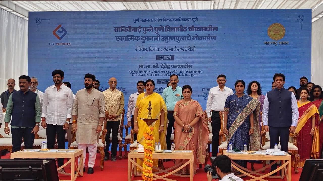 सावित्रीबाई फुले पुणे विद्यापीठासमोरील एकात्मिक दुमजली उड्डाणपूल पुणेकरांच्या सेवेत दाखल झाला असून या प्रकल्पाचे लोकार्पण रविवारी मुख्यमंत्री देवेंद्र फडणवीस यांच्या हस्ते दूरदृश्य प्रणालीद्वारे करण्यात आले.
