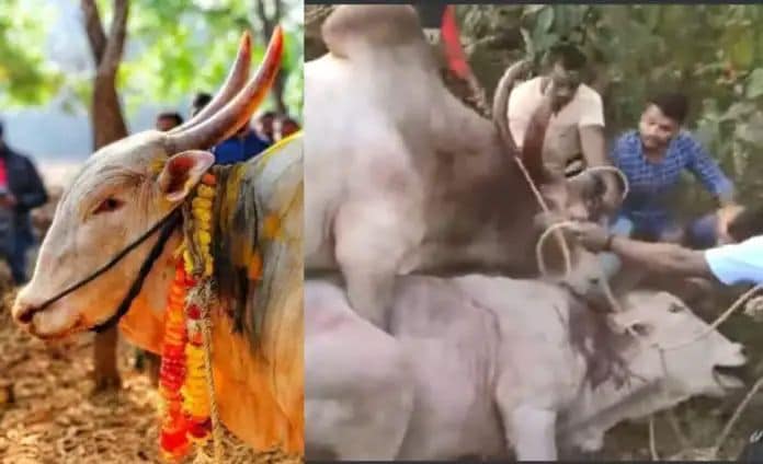 मालवण- सिंधुदुर्ग जिल्ह्यातील मालवण तळगावमध्ये बैलांच्या झूंज लावल्यामुळे त्या बैलांच्या झुंजीत एका बैलाचा मृत्यू झाल्याची धक्कादायक घटना सिंधुदुर्ग जिल्ह्यात घडली आहे.