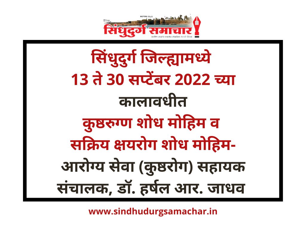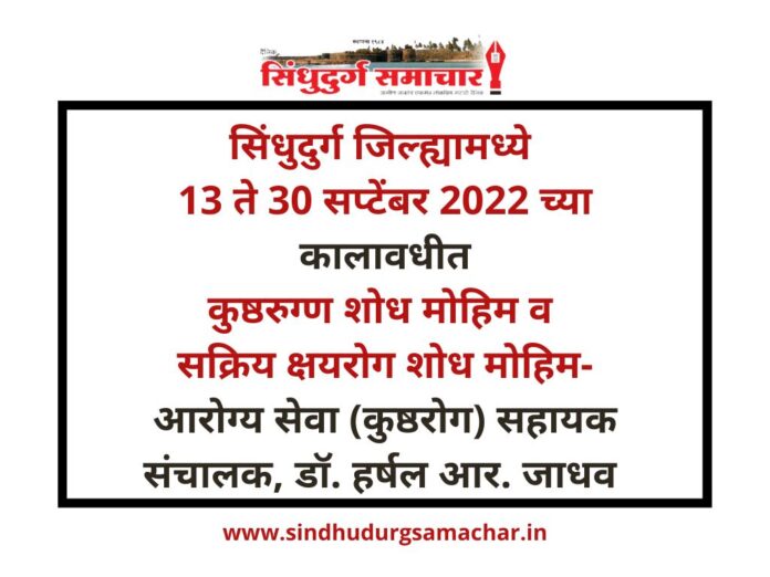 सिंधुदुर्ग: जिल्ह्यामध्ये 13 ते 30 सप्टेंबर 2022 च्या कालावधीत कुष्ठरुग्ण व सक्रिय क्षयरोग शोध मोहिम