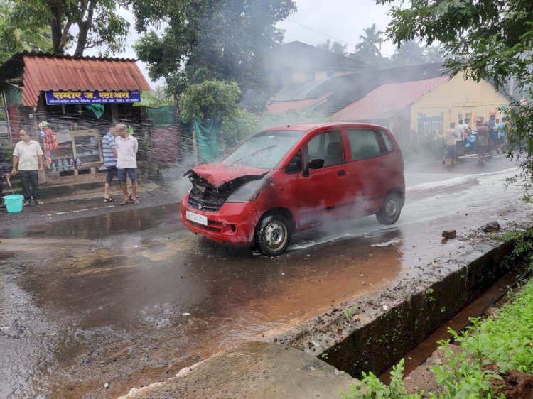 वेंगुर्ला- वेंगुर्ले शहर दाभोली नाका येथे आज रविवारी सायकाळी 5 वाजण्याच्या सुमारास (एम.एच ०२ ए.वाय.८५८०) मारुती सुझुकी झेन कारने दाभोली नाका येथे अचानक पेट घेतला.यावेळी गुरु ठाकूर नामक चालक व त्याच्या सोबत असलेल्या व्यक्तीने प्रसंगावधान राखत गाडीतून बाहेर पडल्याने अनर्थ टळला.मात्र गाडीने मोठ्या प्रमाणात पेट घेतल्याने आग आटोक्यात आणण्यासाठी येथील नागरिकांनी धावपळ केली.