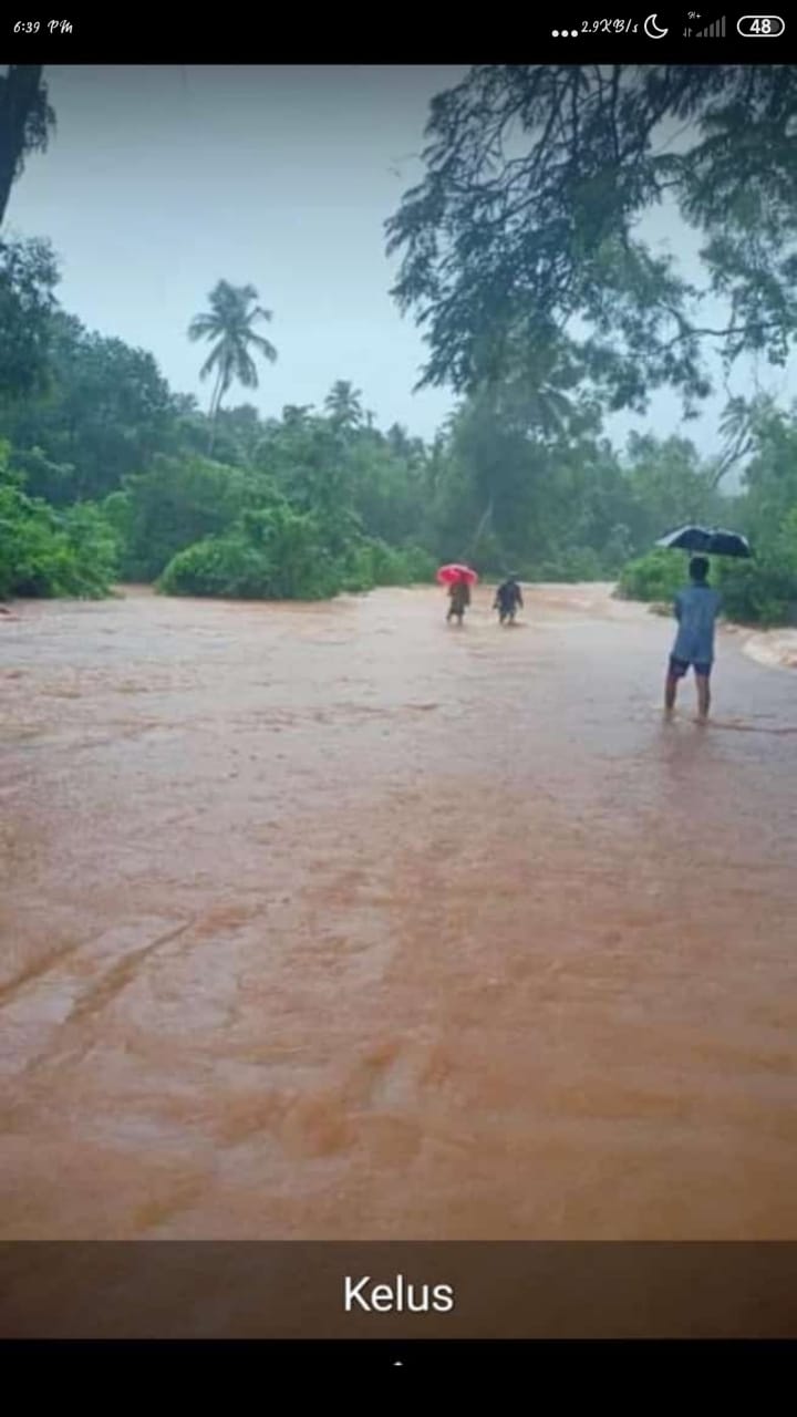 असाच प्रकार दाभोली येथेही पुराचे पाणी चढल्याने गावा गावाचा संर्पक तुटला असून तालूक्याच्या ठिकाणी कामगार अडकून पडले असल्याचे समजते.