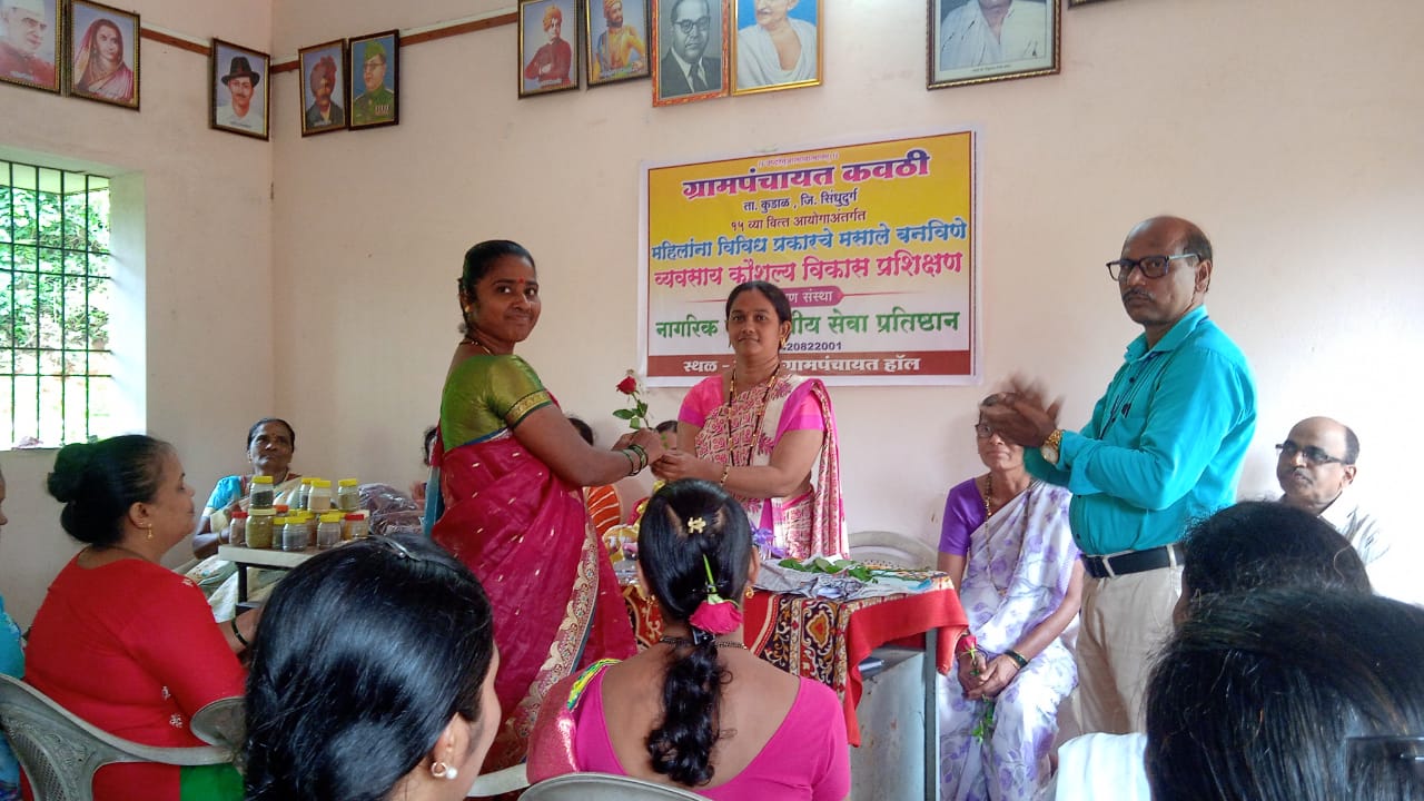 कुडाळ- कवठी येथे नागरिक बहुउद्देशीय संस्था नेरूर चे अध्यक्ष श्री अनिल गावडे यांचे उपस्थितीत पंधरावा वित्तआयोग २०२१/२०२२ च्या अनुषंघाने कवठी गावातील बचत गटाच्या महीलांसाठी ग्रामपंचायत कवठी येथे व विविध प्रकारचे मसाले बनविण्याचे प्रशिक्षणाचे आयोजन करण्यात आले होते. यात पंधराव्या वित्त आयोगातील तरतुदीनुसार एकूण २३ महीला बचत गटातील महिलांना मसाला बनविण्याचे प्रशिक्षण देण्यात आले. https://sindhudurgsamachar.in/kokan-नोकरीचे-प्रलोभन-दाखवून-त/