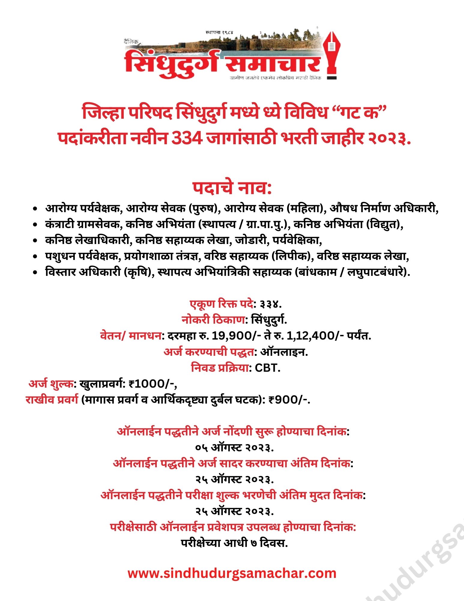 जिल्हा परिषद सिंधुदुर्ग भरती २०२३.