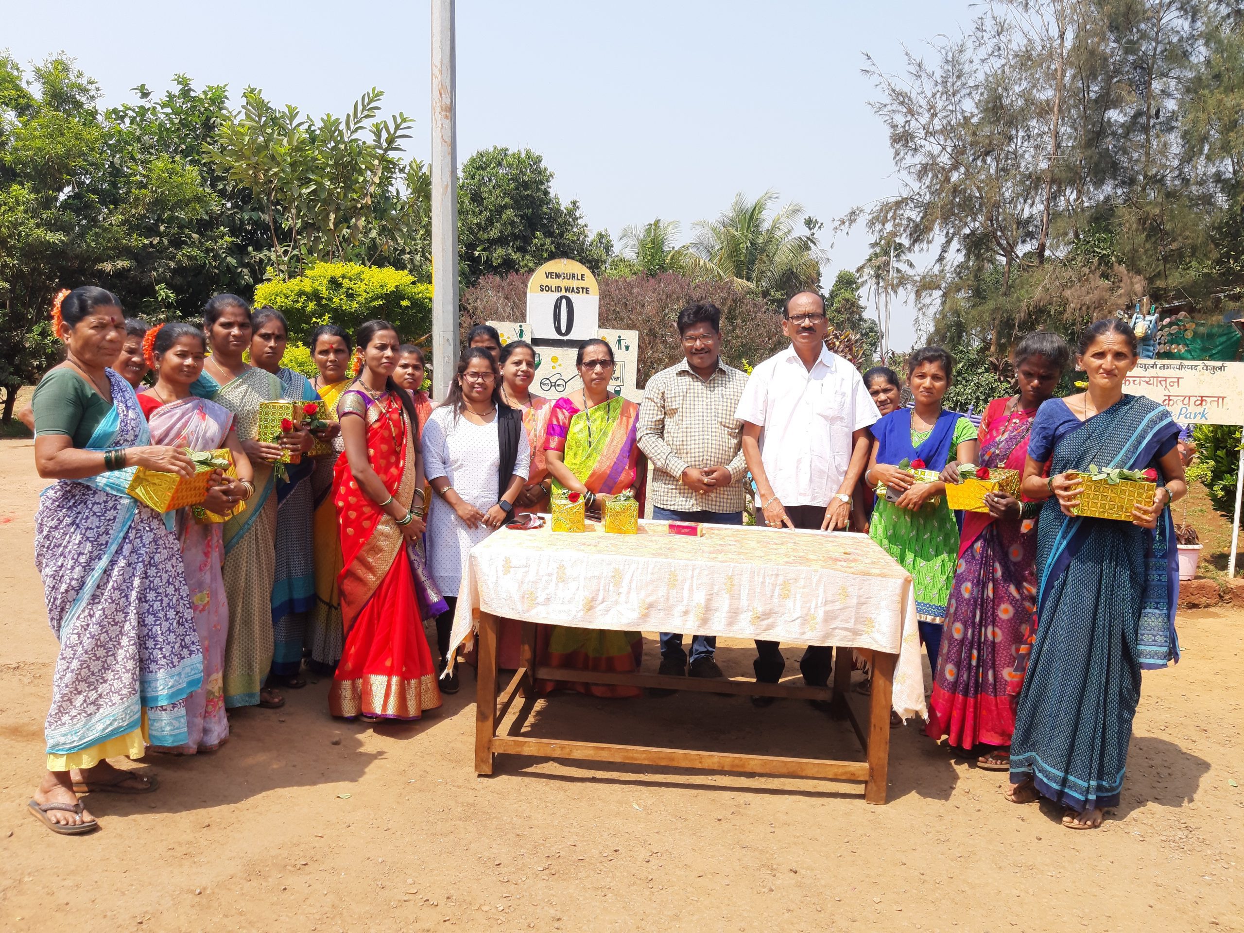 वेंगुर्ला नगरपरिषदेच्या स्वच्छ सुंदर पर्यटन क्षेत्र कंपोस्ट गार्डन येथे नगरपरिषदेच्या कार्यालयीन प्रमुख सौ संगीता कुबल महिला बचत गट विभागाच्या प्रमुख सौ निशा आळवे नगरपालिका स्वच्छता दूत महिला कर्मचारी सेजल जाधव, मेघना धारकर, राजश्री वाडकर ,उमा गोहर, प्रिया गावडे ,किशोरी तुळसकर, वनिता पालकर ,शोभा कांबळे, प्रिया पाटणकर ,उर्मिला जाधव ,रूपाली कोटमेकर, सीमा जाधव आधी उपस्थित होते