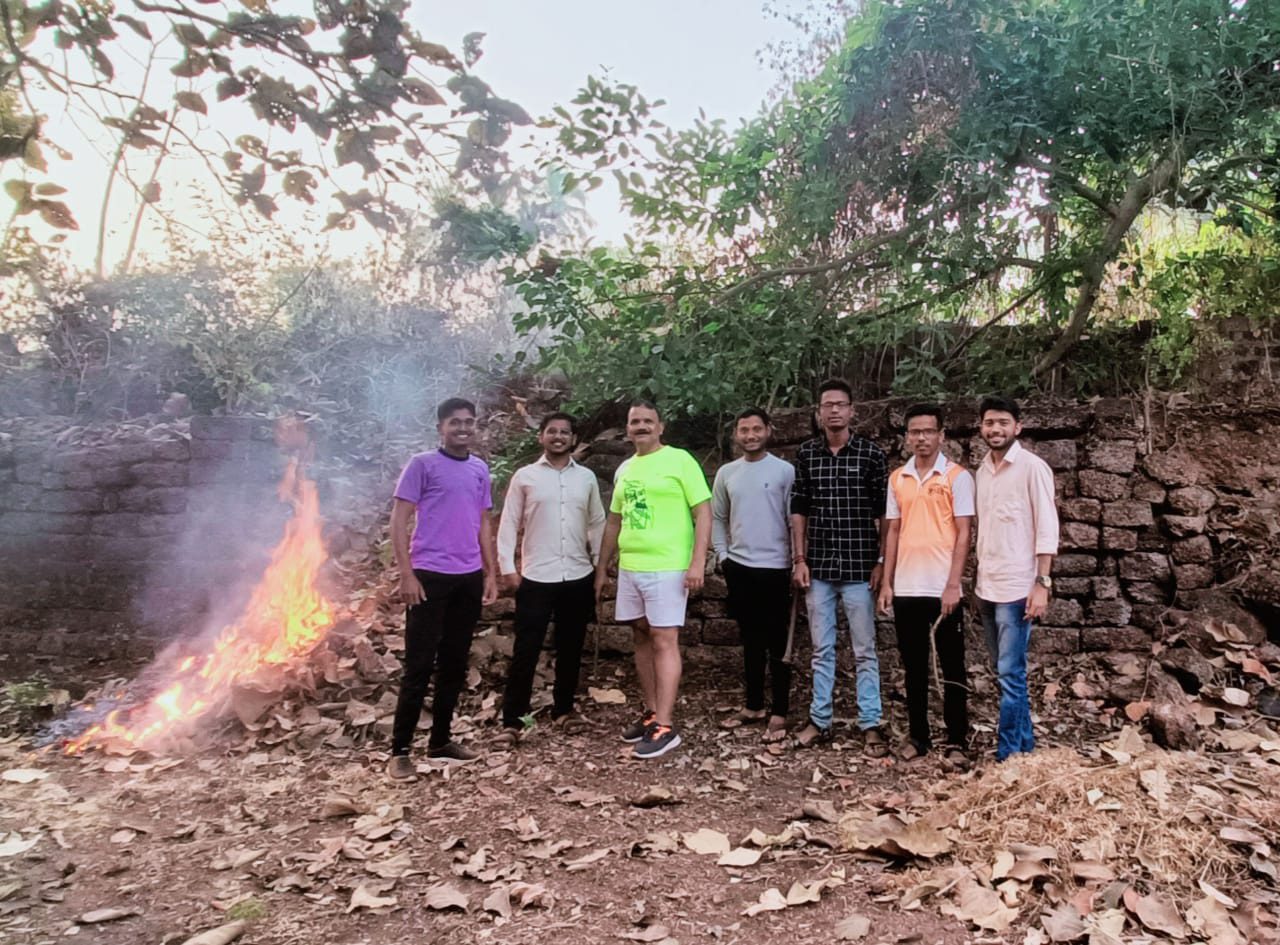 फोटोओळी – जनसेवा प्रतिष्ठानतर्फे डच वखारीची स्वच्छता करण्यात आली.