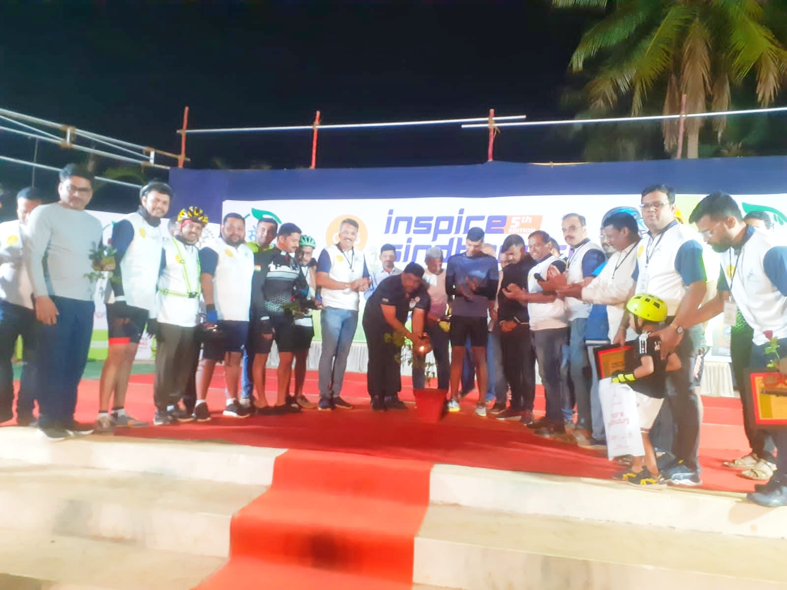 सिंधुदुर्ग सायकलिस्ट असोसिएशन व कुडाळ सायकल क्लबच्यावतीने रविवारी कुडाळ येथे आयोजित करण्यात आलेली ‘इन्स्पायर सिंधुदुर्ग सायकल मॅरेथॉन उत्साहात संपन्न झाली. मॅरेथॉन’ला सायकलपटूंचा उत्स्फूर्त प्रतिसाद मिळाला. ४०० सायकलपट्टू यात सहभागी झाले होते.कुडाळ मालवणचे आमदार वैभव नाईक हे सलग तिसऱ्या वर्षी या मरेथॉनमध्ये सहभागी झाले. कुडाळ एमआयडीसी ते वेंगुर्ले मठ तिठा पुन्हा रिटर्न असे २५ किमीचे अंतर आ. वैभव नाईक सहजरित्या पार करीत आपला फिटनेस दाखवून दिला. जि. प. मुख्य कार्यकारी अधिकारी प्रजीत नायर यांनी तसेच अमेरिका येथील सीरॅक व्ही या तरुणानेही या मॅरेथॉनमध्ये सहभाग घेतला.
