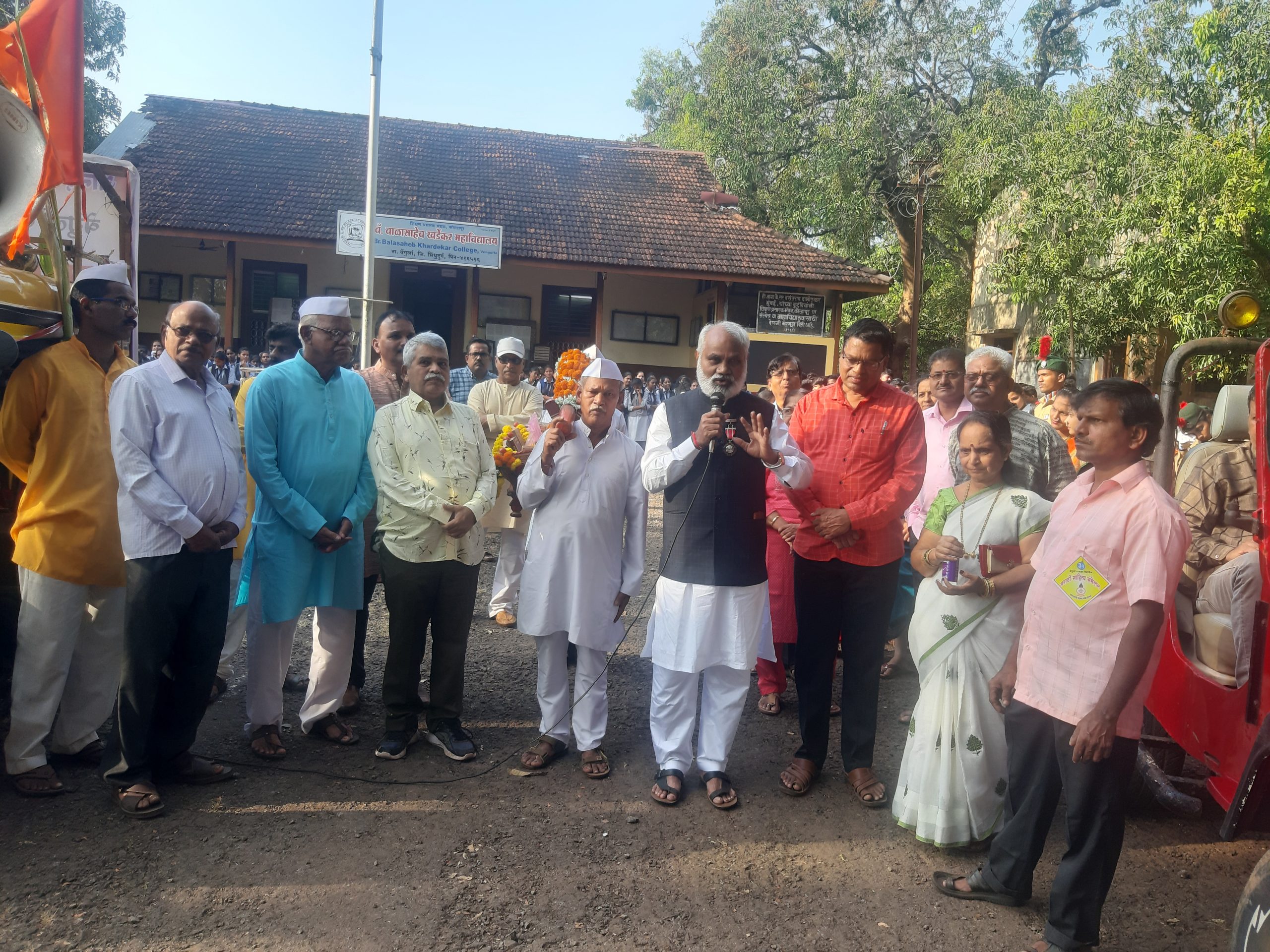 वेंगुर्ला मराठी साहित्य संमेलन ग्रंथदिंडीचा शुभारंभ पद्मश्री परशुराम गंगावणे याच्या हस्ते झाले यवेळी चित्ररथ