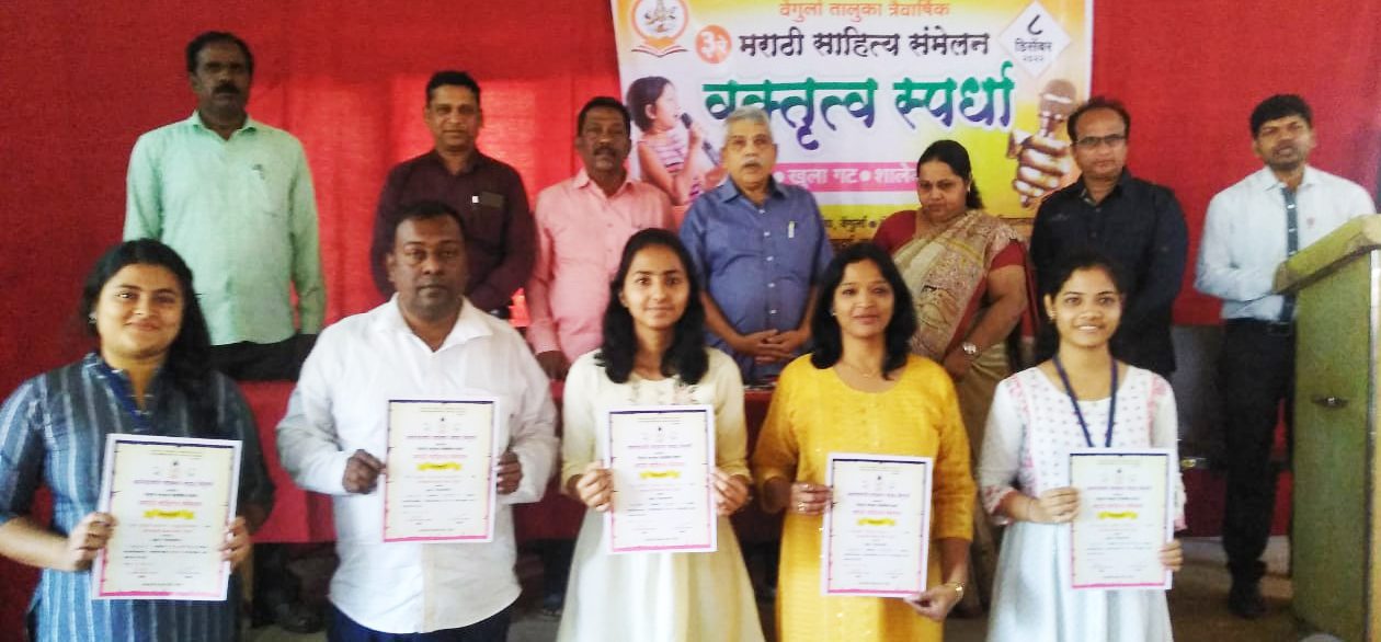 फोटोओळी – वक्तृत्व स्पर्धेतील विजेत्यांना प्रमाणपत्र देऊन गौरविण्यात आले.