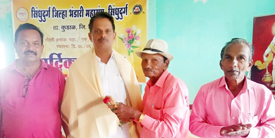 फोटोओळी – देवगड तालुक्यात प्रथमच महासंघाची सभा होत झाल्याने तालुका भंडारी मंडळाचे अध्यक्ष प्रल्हाद मालवणकर यांच्या हस्ते जिल्हाध्यक्ष रमण वायंगणकर यांचा सत्कार करण्यात आला.